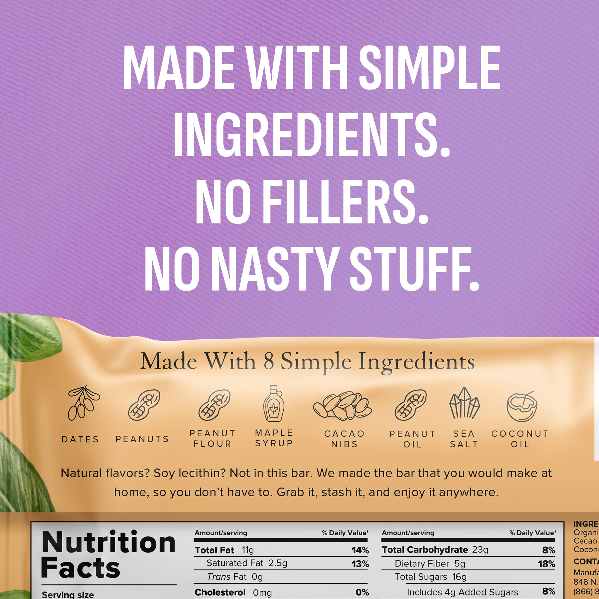 Our USDA Organic Only Bars are made with only 5-12 ingredients. Enjoy sweet satisfaction. Ingredients you know. Plus, they taste like nostalgic childhood treats that meet adulthood standards.